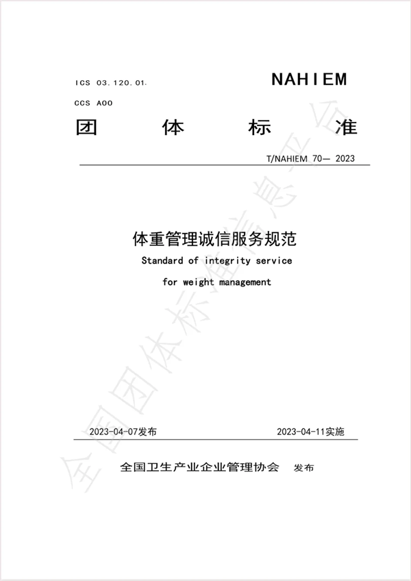隨著我國(guó)"健康中國(guó)2030"戰(zhàn)略的深入推進(jìn),2024年啟動(dòng)的“體重管理年”活動(dòng)標(biāo)志著體重健康管理已上升為國(guó)家健康戰(zhàn)略的重要組成部分。在當(dāng)前減肥產(chǎn)品市場(chǎng)快速增長(zhǎng)的同時(shí),我們更要清醒認(rèn)識(shí)到:規(guī)范行業(yè)發(fā)展、保障消費(fèi)者權(quán)益已成為當(dāng)務(wù)之急。為此,高度呼吁體重管理企業(yè)/機(jī)構(gòu)積極參與《體重管理誠(chéng)信服務(wù)規(guī)范》(T/NAHIEM 70-2023)團(tuán)體標(biāo)準(zhǔn)的執(zhí)行。